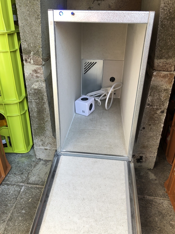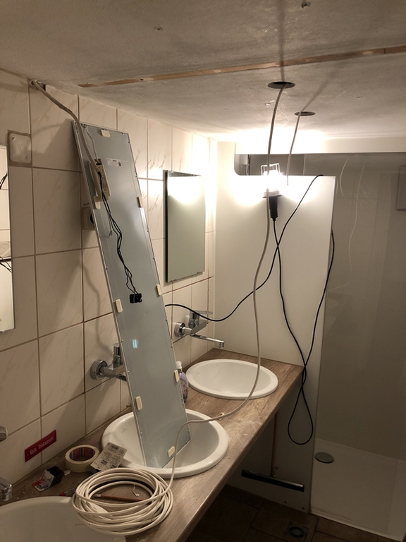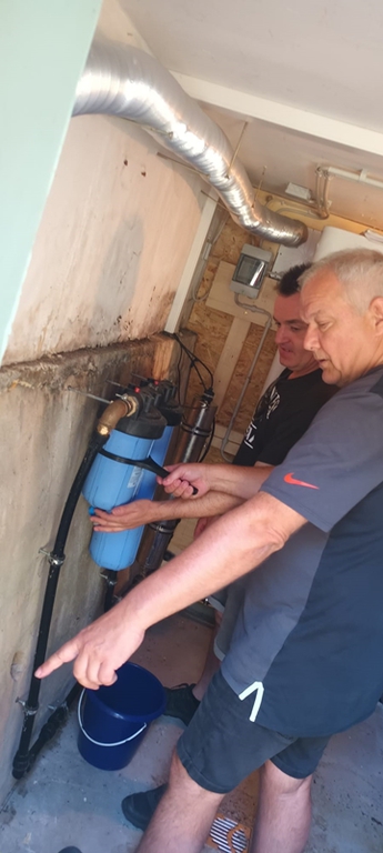 Mit einer ungewöhnlich großen Gruppe und vielen Aufgaben ging es dann im Juli weiter. Es wurde ein neuer Getränkekühlschrank aufgestellt, eine Ladebox für (Fahrrad-)Akkus installiert, die Beleuchtung in den Bädern erneuert (energiesparend), für die Waschräume wurden zusätzliche Unterschränke gebaut, es wurde jede Menge Sperrmüll entsorgt, Rasen gemäht, Baumpflege betrieben, Unkraut gejätet, das Dach gesäubert, Bäder geschrubbt und das ganze Haus auf Vordermann gebracht. Maik konnte mal wieder alle seine Maschinen auslasten !