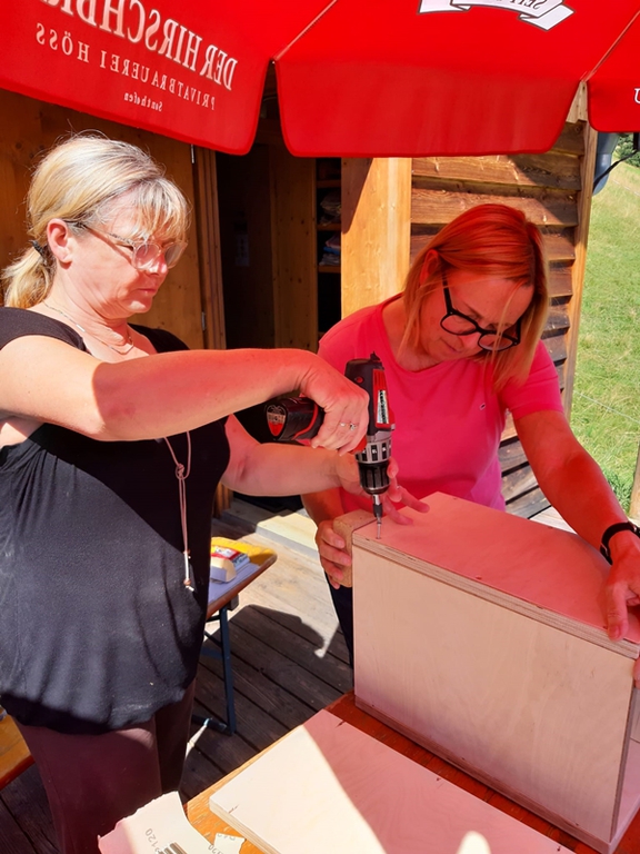Wie immer kam auch die Geselligkeit nicht zu kurz, die Pausen und die Abende waren zum Relaxen willkommen, egal ob im Liegestuhl oder auf dem Bänkle vor dem Schuppen.