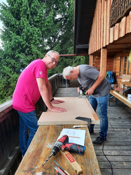 Dieses Jahr wurde an zwei Terminen auf unserer Hütte gearbeitet: Im Mai unterstützten mich bei kaltem und regnerischen Wetter 7 Helferinnen und Helfer mit den Vorbereitungen für größere Sanierungsmaßnahmen im Juli.
